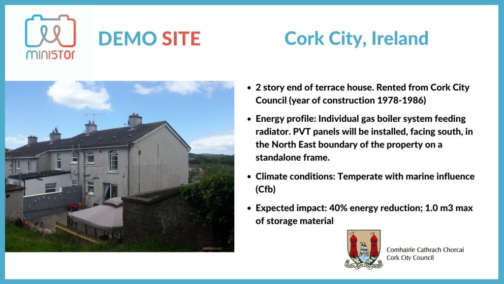 Spanning four countries, the five demonstration sites are located in North-West Europe (Ireland), Western Europe (Spain), Southern Europe (Greece) and Central Europe (Hungary). These pilot sites represent diverse residential usage, having various climatic conditions, thermal load needs, energy realities, expectations and regulations. Cork City Council, in particular, manages over 9.000 social houses, and MiniStor is part of a three-stage approach to to improve and certificate their energy efficiency, combining new and already existing sources of energy. More information on the 5 demonstrators is available here.